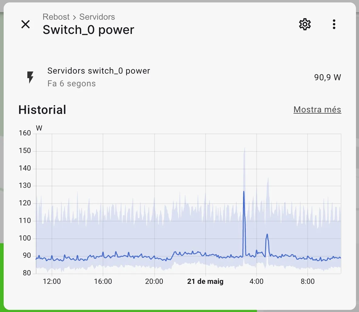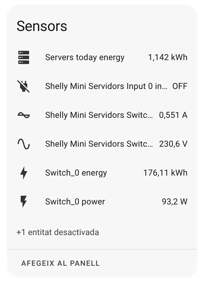 M’agrada saber el consum de les coses de casa: nevera, forn, rentavaixelles, entre molts d’altres. També el homelab i tenint en compte que està 24/7 funcionant, doncs encara més vull saber quan gasta.